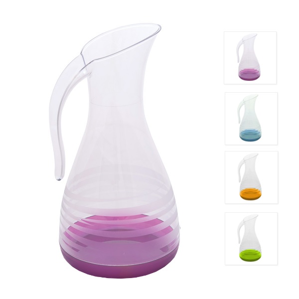 Dzbanek do wody i zimnych napojów o pięknym kształcie, wykonany z wysokiej jakości tworzywa sztucznego. Górna część przeźroczysta, dolna w pasy koloru mlecznego i podstawa w kontrastowym kolorze. Kolory podstaw: zielona, niebieska, fiolet, pomarańczowa. Dzbanek lekki i praktyczny w użyciu, dzięki idealnie wyprofilowanej rączce. Świetnie komponuje się do letnich stołów w ogrodzie, altanie, czy przy grillu. Pięknie prezentuje się z wodą z dodatkiem ziół, cytryny, czy innych dodatków. Każdy dzbanek w kartonowym pudełku - sprawdzi się jako prezent na ogrodowe przyjęcie. Kolory wydawane losowo, ewentualnie proszę w uwagach zaznaczyć, który kolor preferowany.