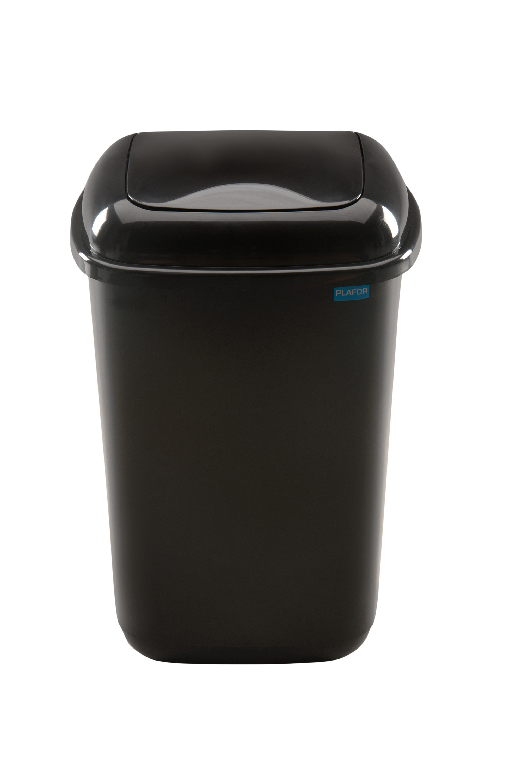 Uchylny, prostokątny, czarny kosz na śmieci - 45l do segregacji odpadów. Klapa cała również w kolorze czarnym. Do kosza dołączamy zestaw małych naklejek z każdym kolorem i opisem segregacji. Wedle zapotrzebowania można odpowiednią naklejkę umieścić na klapie kosza. Kosz można stosować zarówno wewnątrz, jak i na zewnątrz pomieszczeń. Kosz wykonany z plastiku o dużej odporności na uszkodzenia mechaniczne oraz warunki pogodowe. Idealnie sprawdzi się jako kosz przy domu, garażu, w pomieszczeniach gospodarczych, gastronomii czy halach magazynowo - produkcyjnych.