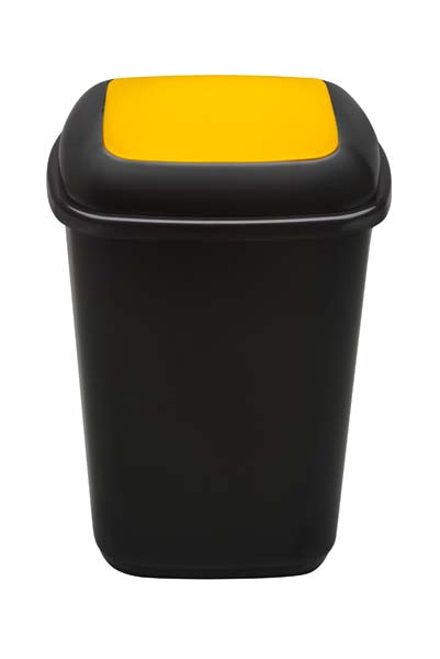 Uchylny, prostokątny, czarny kosz na śmieci - 45l do segregacji odpadów. Uchylna klapka w kolorze segregacji. Na koszu umieszczona naklejka w kolorze segregacji z opisem do czego kosz jest przeznaczony. Kosz można stosować zarówno wewnątrz, jak i na zewnątrz pomieszczeń. Kosz wykonany z plastiku o dużej odporności na uszkodzenia mechaniczne oraz warunki pogodowe. Idealnie sprawdzi się jako kosz przy domu, garażu, w pomieszczeniach gospodarczych, gastronomii czy halach magazynowo - produkcyjnych.