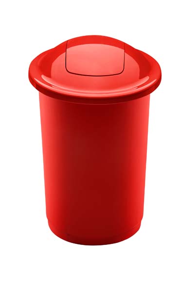 Uchylny, okrągły kosz na śmieci 50l Top Bin to doskonały wybór do dużych pomieszczeń. Sprawdzi się w biurze, szkole, przedszkolu, świetlicy, garażu lub pomieszczeniu gospodarczym. Piękne, intensywne, wesołe kolory koszy Top Bin ożywią każde pomieszczenie, mogą też stanowić kolorystyczny akcent w pomieszczeniach utrzymanych w bieli lub szarości. Pokrywa zamyka i zakrywa zawartość kosza, a otwarcie kosza wymaga tylko lekkiego dotknięcia ruchomej części pokrywy. Trwały, estetyczny plastik zapewnia na długo zadowolenie z użytkowania. Do rozmiaru 50l zaleca się stosowanie worków o pojemności 120l. Kosze Top Bin można również stosować jako kosze do segregacji. Do kosza dokładamy naklejkę w kolorze segregacji do ewentualnego samodzielnego przylepienia. Kolor czerwony - metal.