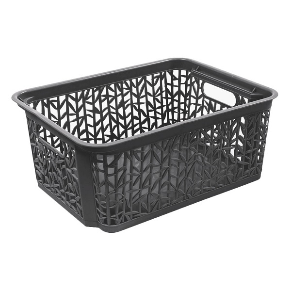 Plastikowy, ażurowy koszyk. Ażurowy wzór motywowany gałązkami i listkami bambusa. Koszyk wykonany z wysokiej jakości tworzywa. Rodzaj zastosowanego plastiku zapewnia bardzo dobre parametry wytrzymałościowe. Koszyk idealny do przechowywania i segregowania drobnych przedmiotów, zabawek, klocków, dziecięcych ubranek, dokumentów itp. Koszyki można piętrować - odpowiednio ustawiając koszyki wchodzą jeden w drugi lub w odwrotnej pozycji stoją jeden na drugim /tzw koszyki nastawne/.